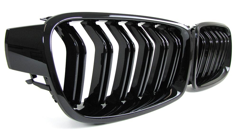 Priekinio bamperio grotelės BMW 3 F30 F31 11-19 dvigubos juodos blizgios